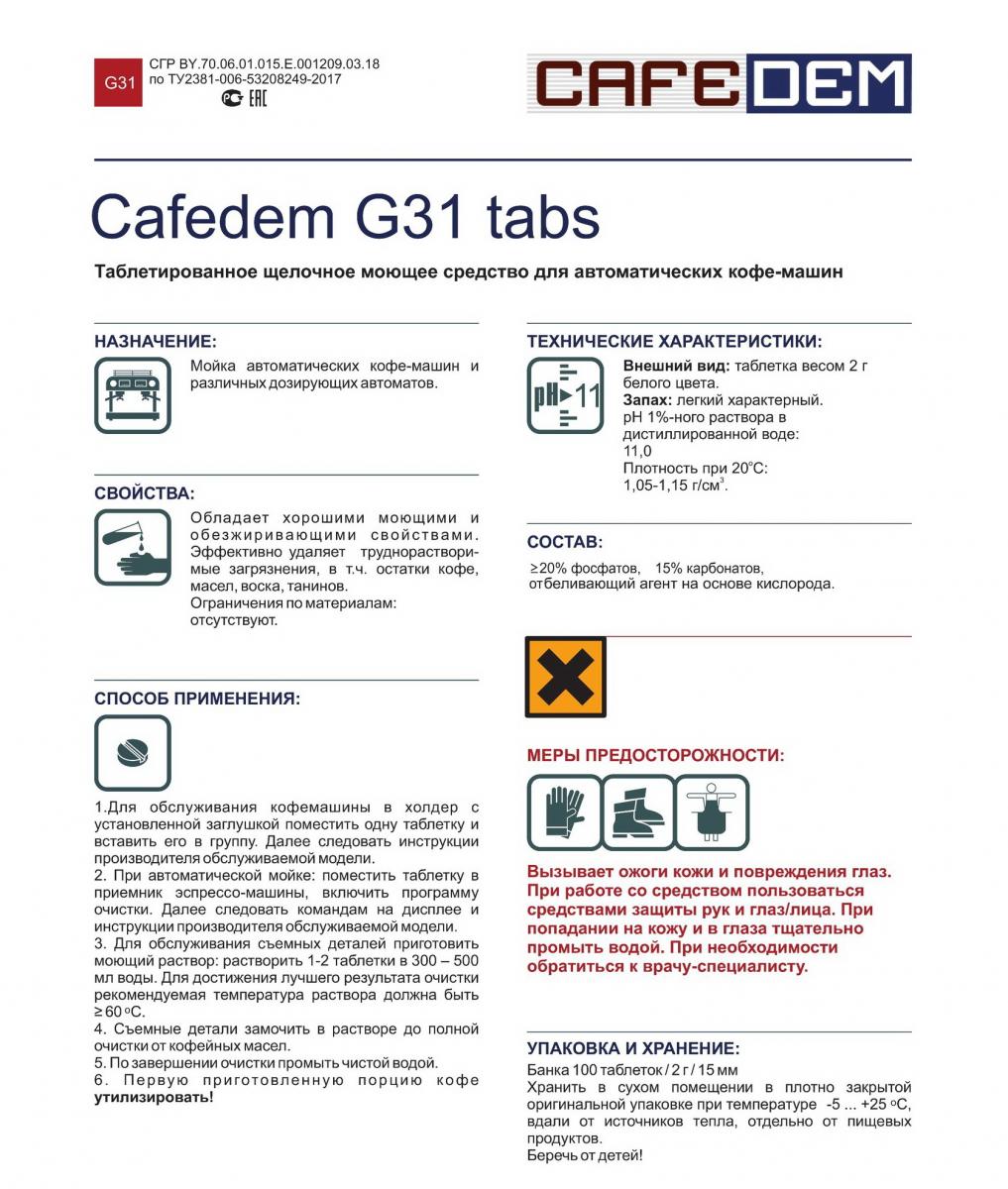 Получить информацию об условиях поставки товара "Таблетированное моющее средство для кофемашин Cafedem G31" Вы можете позвонив нам по телефонам: